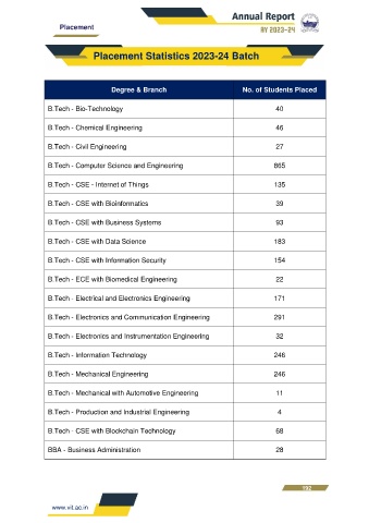 Degree & Branch No. of Students Placed
