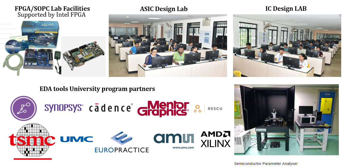 The post-graduate programme in VLSI Design at VIT, Vellore aims at providing fundamental concepts related to the design of VLSI circuits and systems. The students of the programme are trained to understand the complete VLSI design flow using various industry-standard Electronic Design Automation (EDA) tools like Synopsys, Cadence, etc. The curriculum of VLSI Design has been designed to cater to the ever-changing demands of VLSI industry and needs of the society through research. The focus areas of the programme include Digital system design, Analog & RF VLSI Design, Semiconductor Devices & Modelling.