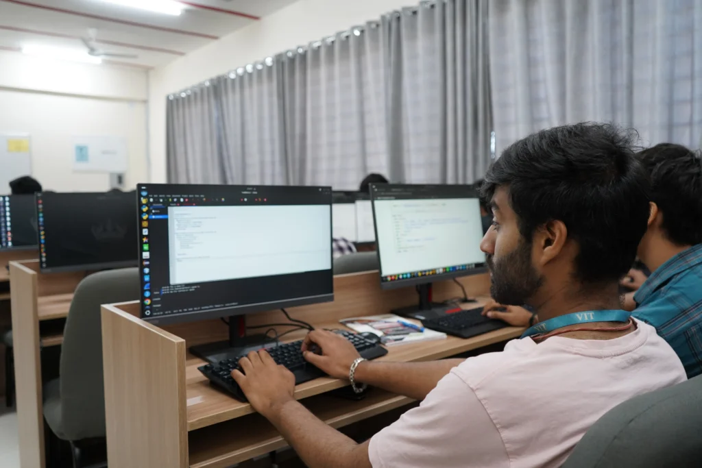 The PRP-118 Full Stack Development Lab, located in the PRP block under the School of Computer Science and Engineering (SCOPE), VIT, is designed to provide strong practical exposure to core computer science and software development concepts. The lab supports foundational and advanced programming courses and enables students to design, implement, and evaluate software systems using modern development tools and system software.